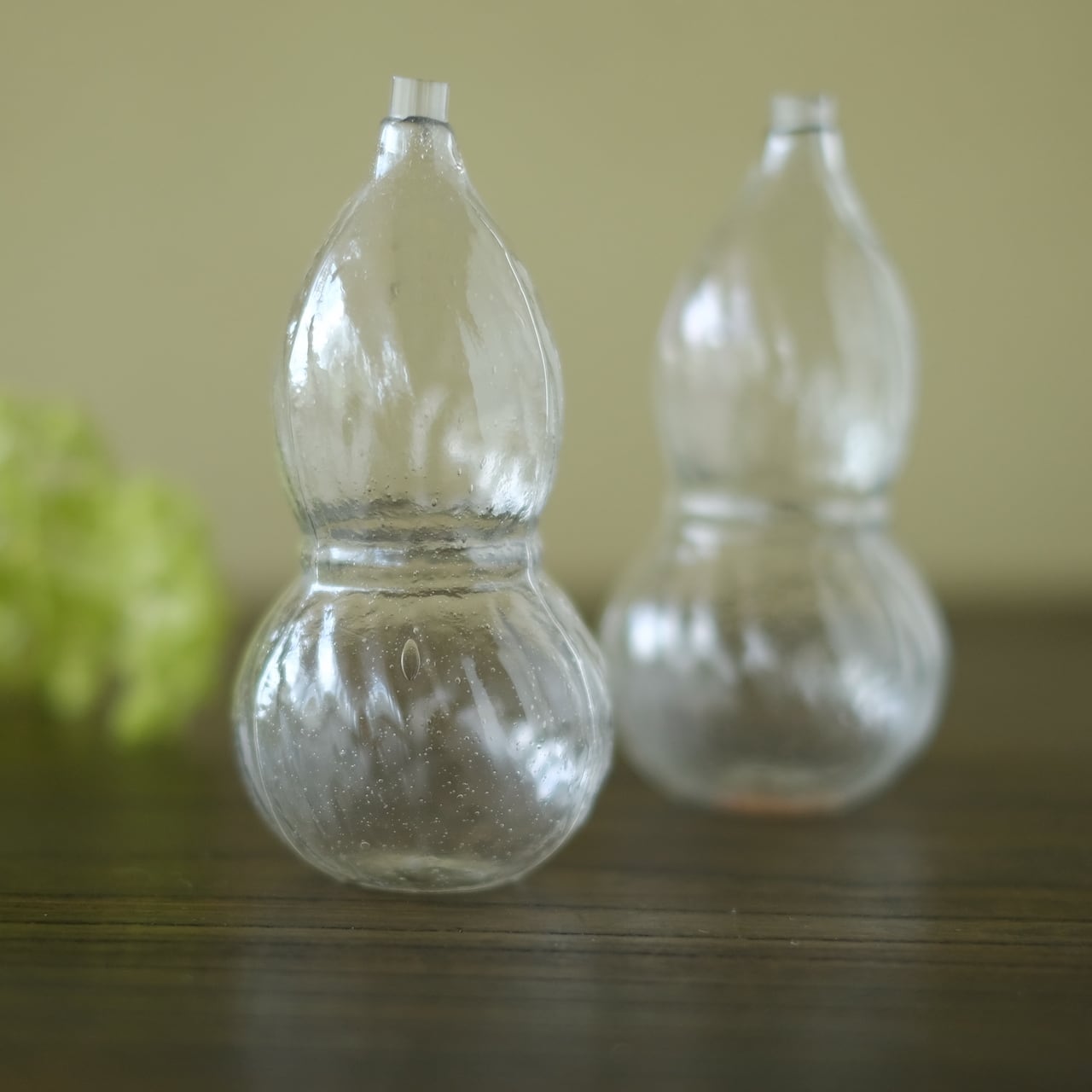 明治-大正時代の瓢箪型のニッキ水瓶です。古いガラスの堪能したい方にぴったりの気泡とゆらゆら具合です。薄く繊細なところも古ガラス好きの心をくすぐります。
